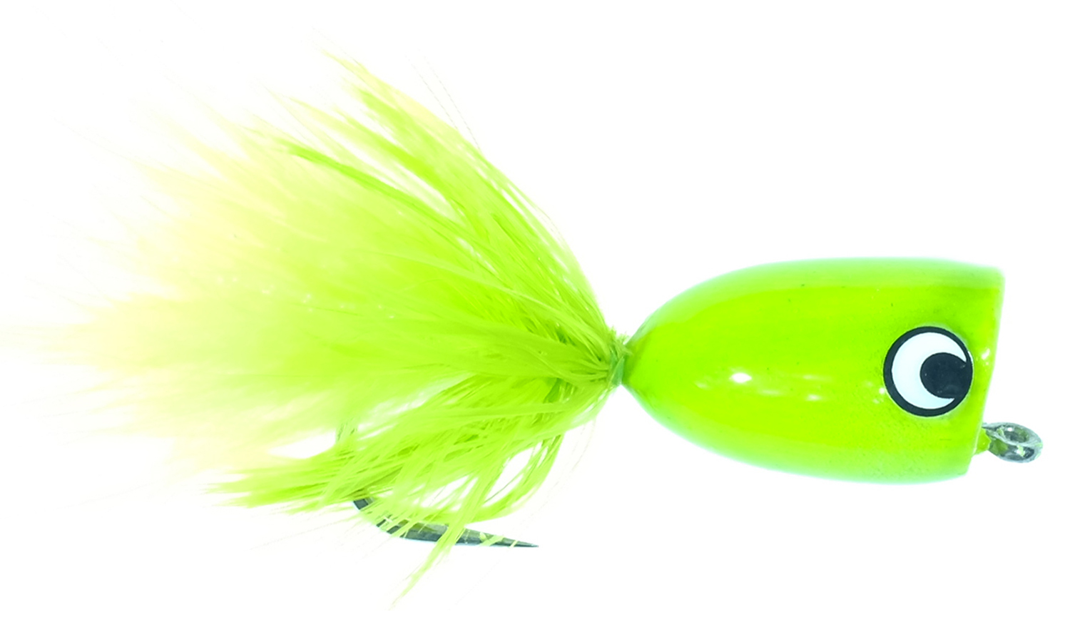 The concave head pushes water and produces an audible “pop” that draws attention from a distance.