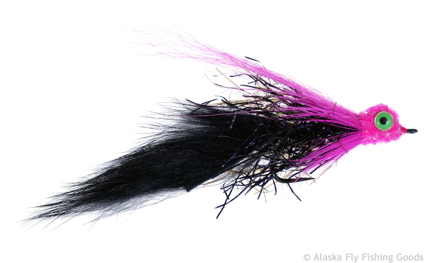 Light to cast but big in the water. Sparse materials tied in reverse create a large profile without excess bulk.